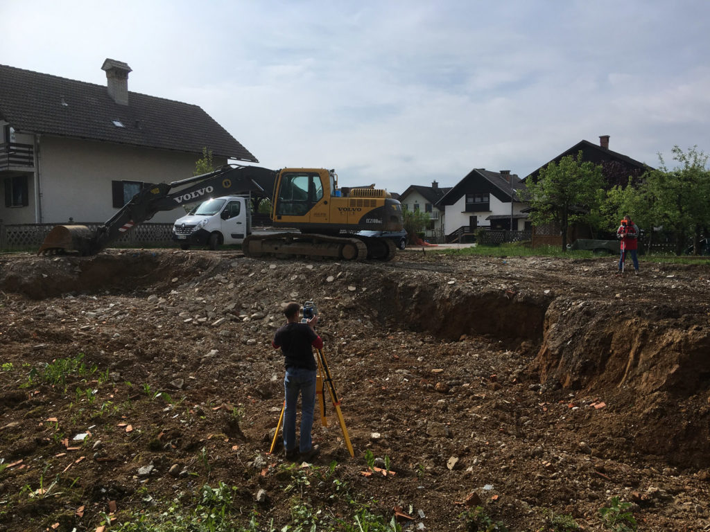 - izdelava geodetskega načrta – izmera terena pred začetkom gradnje, po končani gradnji